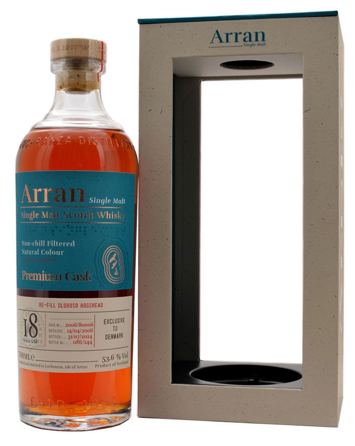 Arran 2006/2024 Premium Cask 18 år Refill Oloroso Hogshead Single Island Malt Scotch Whisky 53.6%