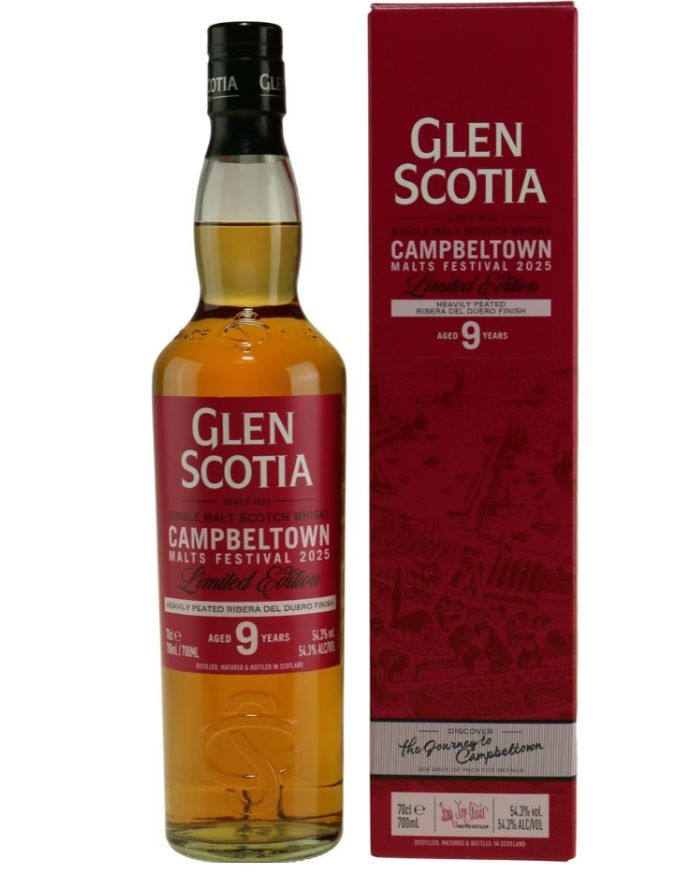 Glen Scotia Campbeltown Festival 2025 är en kraftfull och rökig single malt whisky, framtagen som en limiterad utgåva till den årliga Campbeltown Malts Festival. Whiskyn är nio år gammal och har först lagrats på first-fill bourbonfat innan den fått en fem månader lång finish på Ribera del Duero rödvinsfat, vilket tillför intensiv fruktighet och djup komplexitet.