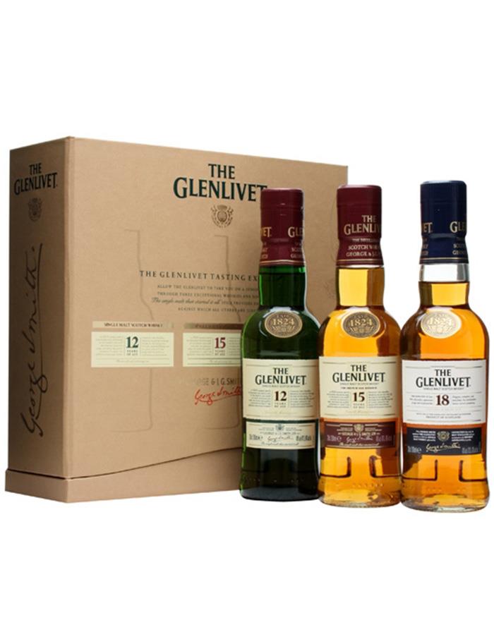 Destilleri: The Glenlivet Alder: 12 år + 15 år + 18 år Type: Single Malt Scotch Whisky Alc. styrke: 40 % 3 x 20 cl. Andet: