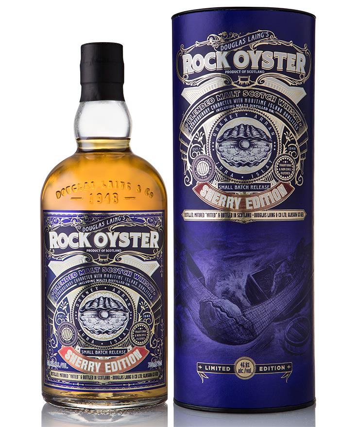 Rock Oyster Sherry Edition från Douglas Laing är en Island Blended Malt Scotch Whisky buteljerad vid 46,8 %, skapad för att förena seriens maritima karaktär med den djupa sötma som bara sherryfat kan ge. Det är första gången Rock Oyster får en sherryfinish, och resultatet är en whisky där havssalt, torvrök och kustmineralitet möter mörk frukt, kryddor och en rundare sötma från spanska butts.