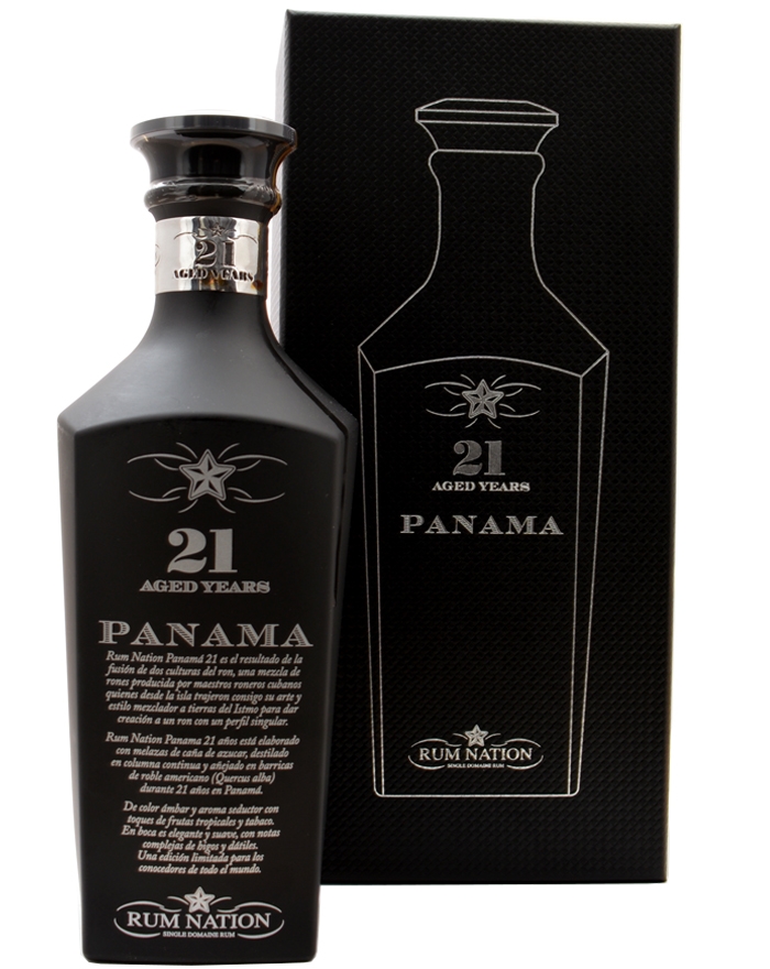 Rum Nation Panama 21 år Black Decanter tillverkas av sockerrörsmelass, destillerat i kontinuerliga kolonnstill och lagrat lokalt i amerikanska ekfat (Quercus alba) i minst 21 år.