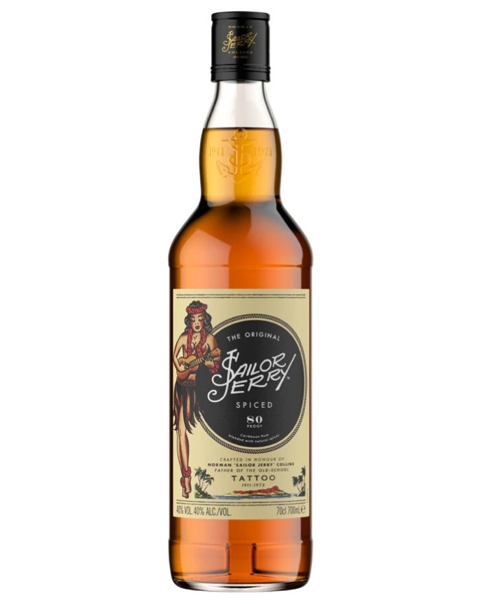 Sailor Jerry Spiced Caribbean spirit drink på 40% - 80 proof uppkallad efter den berömda tatueraren