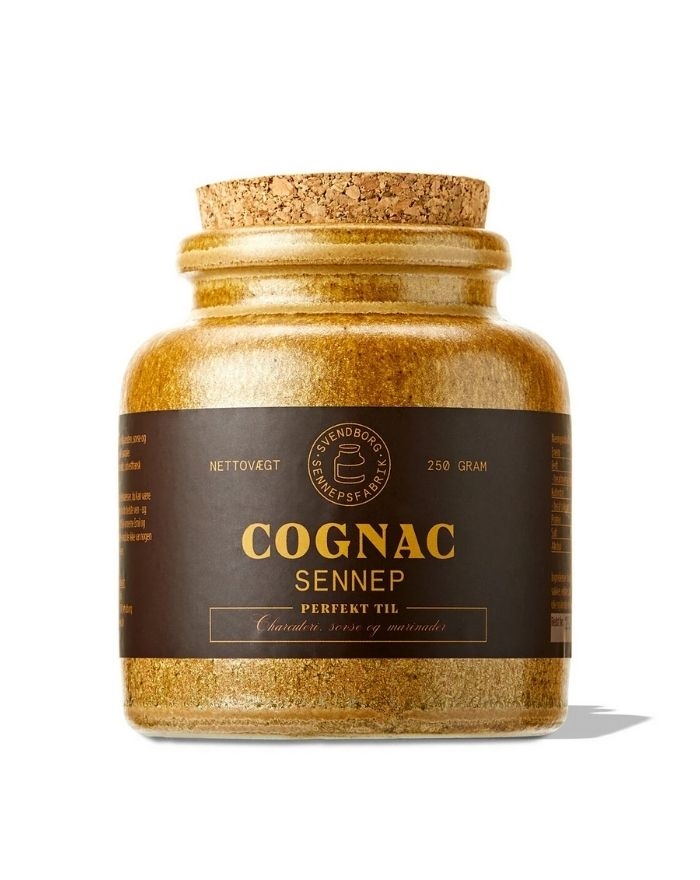 Senap Dansk Cognac Senap är en söt och mjuk senap som tillsatts lite konjak för att ge en ny och förbättrad smak. Passar till charkuterier, marinader, dressingar och som krydda i otaliga olika rätter. Bara fantasin sätter gränserna här. Vi rekommenderar att förvara denna senap i rumstemperatur, eftersom det är så smaken kommer fram som mest. Smaklig måltid!